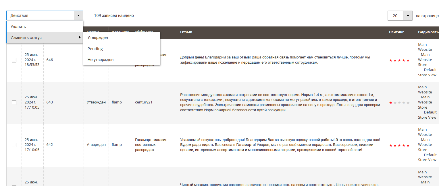 При написании листинга столкнулся с проблемой: как создать massAction с тем же справочником, с которым выводится определенная колонка в гриде (в моем случае это был статус отзыва review_status)